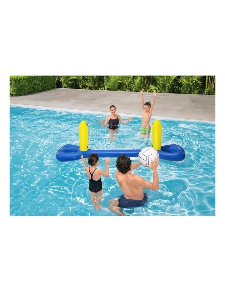 Hop in the pool and get splashing and spiking with the Bestway Volleyball Set. Designed to get kids moving, grooving and out of the house, this hit pool toy is quality-tested and puts the focus back on fun! Kids can play around or perfect their volleyball skills by bumping, setting and spiking the ball (included) over the net with friends. Easy to use, simply inflate it, connect the net and place it in the pool!