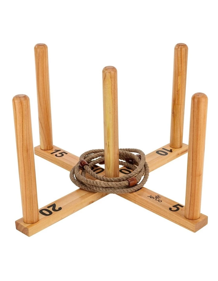 Jenjo Mega Quoits Wooden Rope Ring Toss Outdoor Game Set 100cm Wide Including 4 Rings