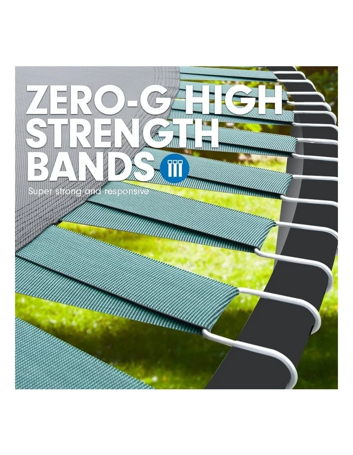 Springless design: Rather than using steel springs, this innovative design uses super-responsive, wide elastic straps all the way around the mat to provide the bounce in a safe springless jumping area.
