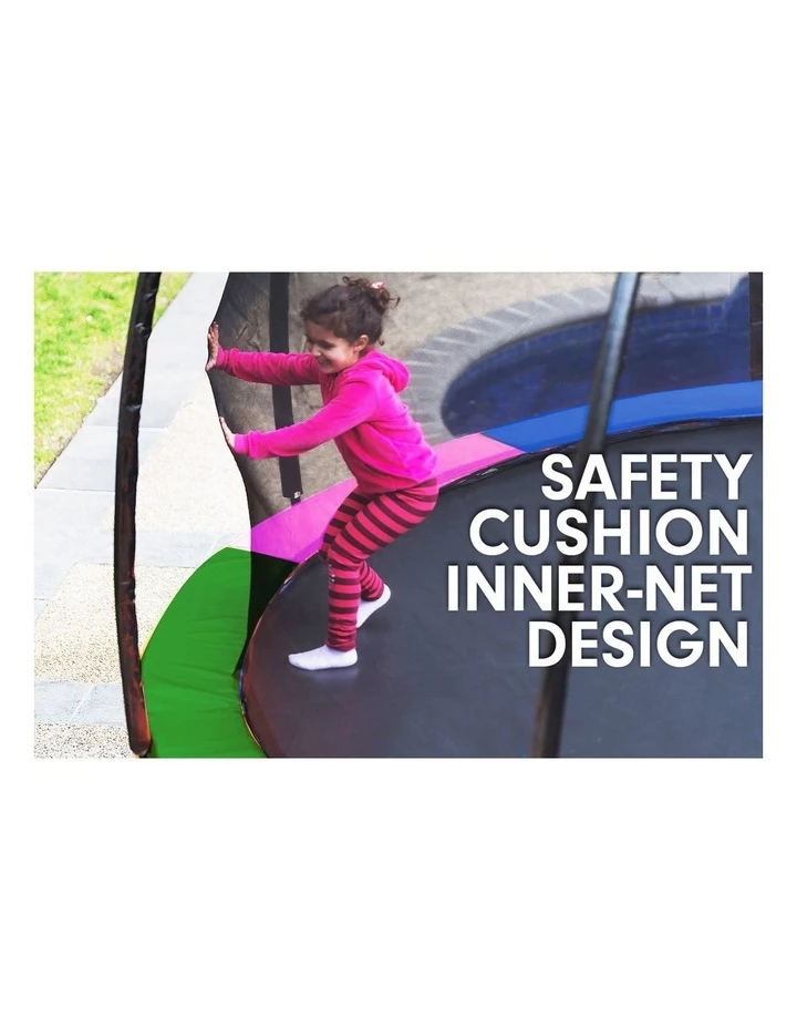 This trampoline uses linked legs for superior stability and structure of the legs also minimises the tendency for legs to dig into the ground. Legs also feature re-enforced joint bars to enhance strength and stability.The padding cover of the trampoline is UV stabilised and has embedded nylon mesh.