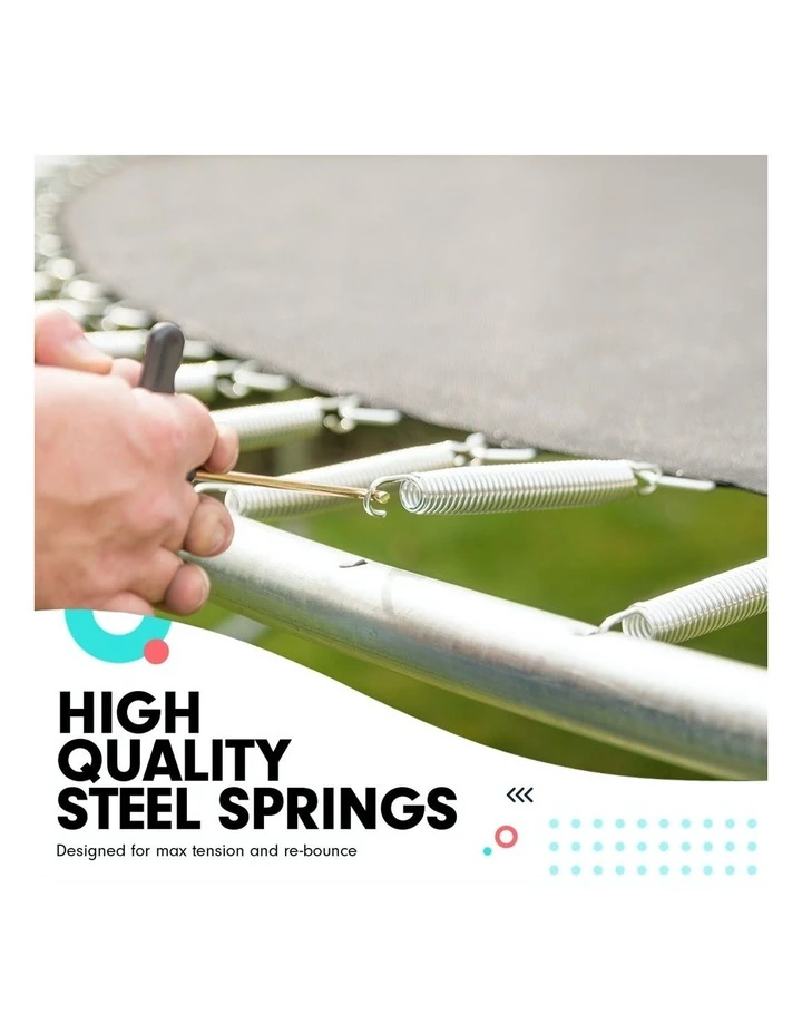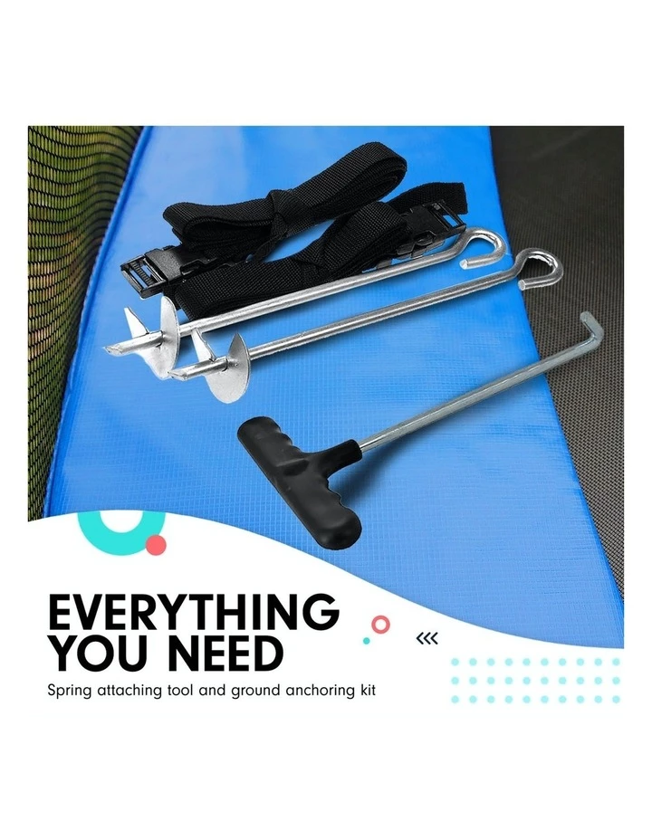 Safety Instructions:Trampoline must be installed on a flat, solid, level surface & be properly secured in the event of windy conditions. Trampoline MUST NOT BE installed on stones, gravel, crushed rock, sand, uneven grass, uneven concrete, soft or loose surfaces. Improper installation or usage not in accordance with these instructions may result in serious injury and/or damage to the product, voiding all implied and express warranties.