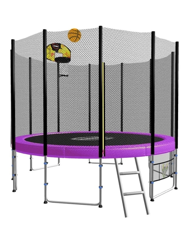 This trampoline is supplied with a basketball kit to add even more fun for the kids. This includes the backboard and ring, net, ball, and pump!