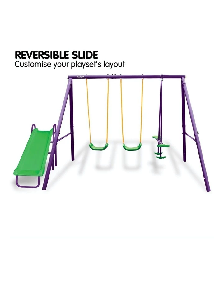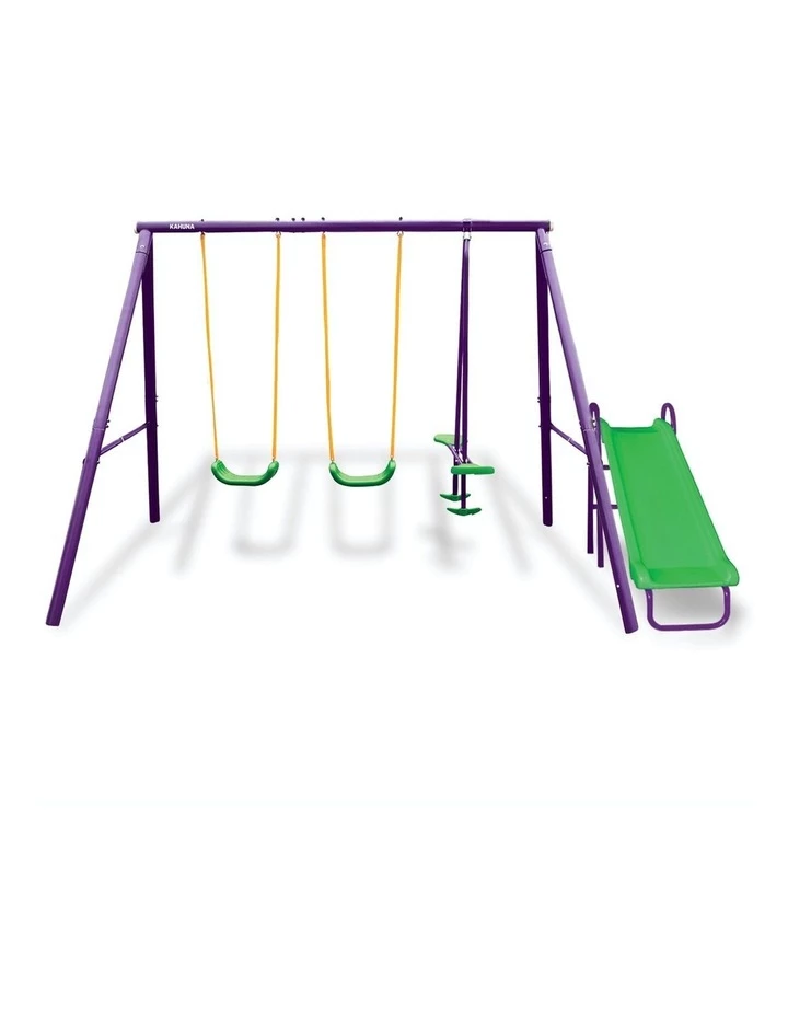 Treat your kids to an awesome playground right in your own backyard! This Kahuna playset features two classic swings, one tandem swing and a smooth slide for active, all-day fun. With its eye-catching colours, it’s sure to spruce up your outdoor play area.