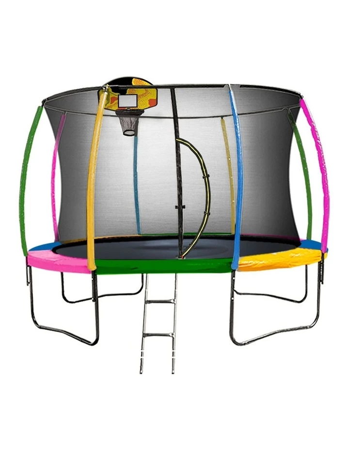 Basketball set!: This trampoline is supplied with a basketball kit to add even more fun for the kids. This includes the backboard and ring, net, ball, and pump.