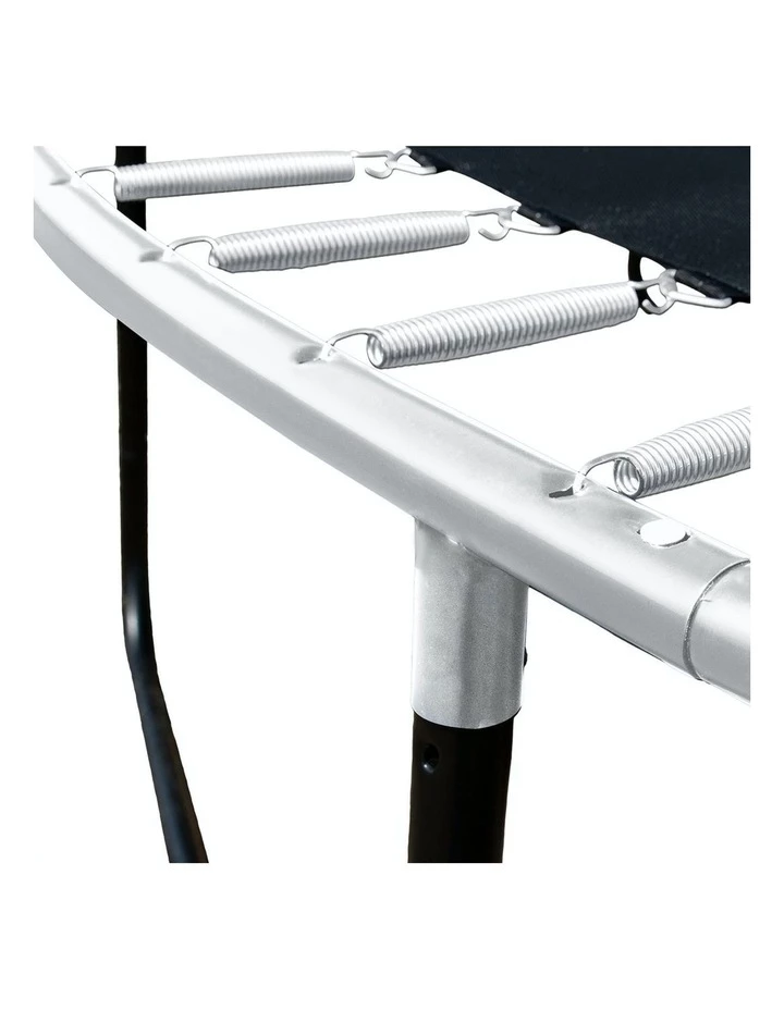 This trampoline uses linked legs for superior stability and structure of the legs also minimises the tendency for legs to dig into the ground. Legs also feature re-enforced joint bars to enhance strength and stability.The padding cover of the trampoline is UV stabilised and has embedded nylon mesh.