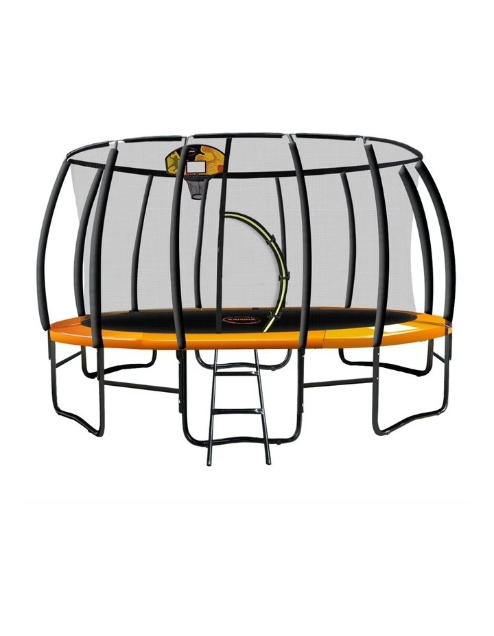 Basketball set!This trampoline is supplied with a basketball kit to add even more fun for the kids. This includes the backboard and ring, net, ball, and pump!