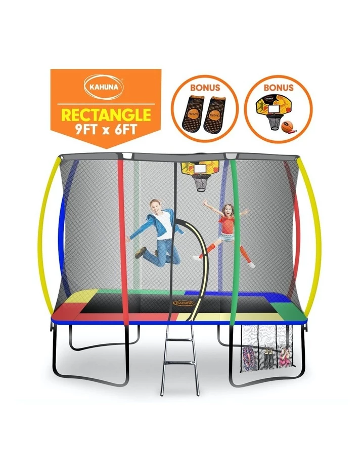 CONTENTS: * 1 x 9ft x 6ft Trampoline with net * 1 x Shoe Tidy * 1 x Ladder * Carton Dimensions * A: 158 x 50 x 13cm – 20kg * B: 108 x 50 x 13cm – 19kg * C: 100 x 45 x 13cm – 17kg