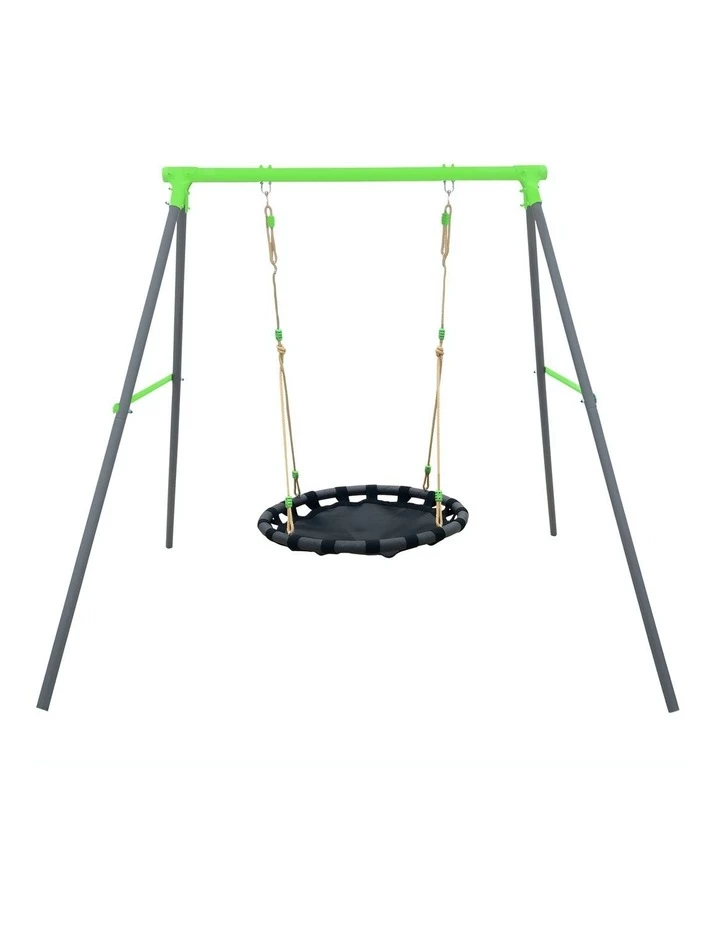 The Cellar metal swing set, with its nest swing can be as relaxing as a hammock gently swaying in the breeze, but it can also take little thrill seekers on high flying adventures. Watch them soar through the sky on a magic ride or glide at their own speed.