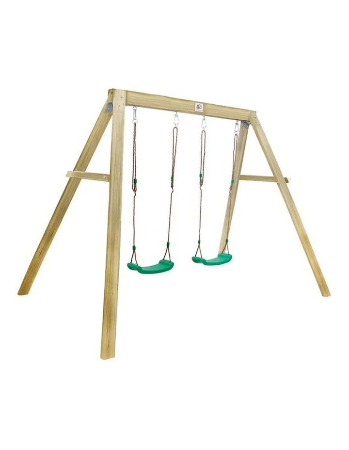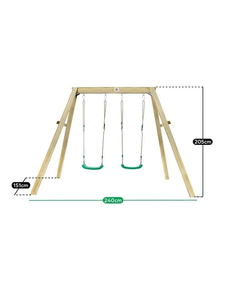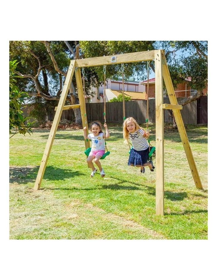 There?s no better way to spend the day than swinging side by side with a friend. This natural wood swing looks great in any backyard and is a fun playtime for two buddies. The strong timber frame lets them fly out of this world with year round durability.