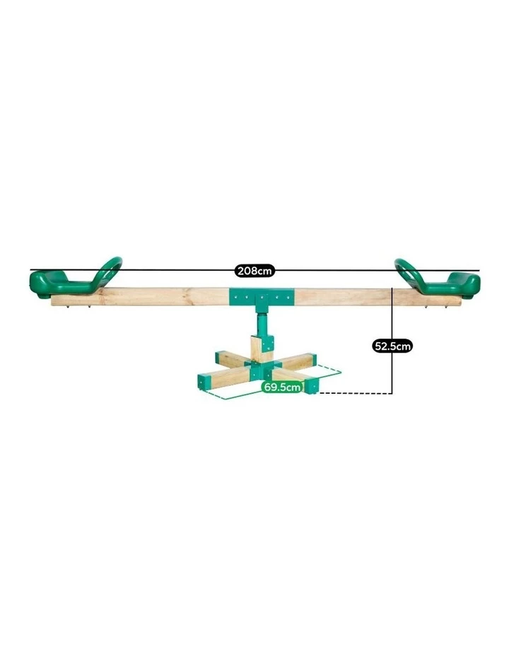 Reach thrilling heights flying through the air on the Rocka See Saw. This strong timber see saw is bigger with a higher arc than metal see saws. Along with the 360 rotation, the Rocka has an enormous arc to keep little thrill seekers entertained for hours.
