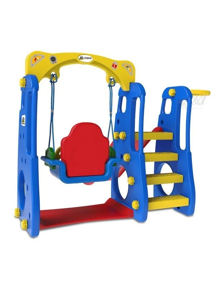 Playing is the best way to learn when we’re young. The Ruby 4 in1 swing and slide for kids under 3 is the ideal play centre for little learners to develop cognitive and motor skills with a 1.2m climb and slide, secure bucket swing, interactive music button, and basketball hoop.