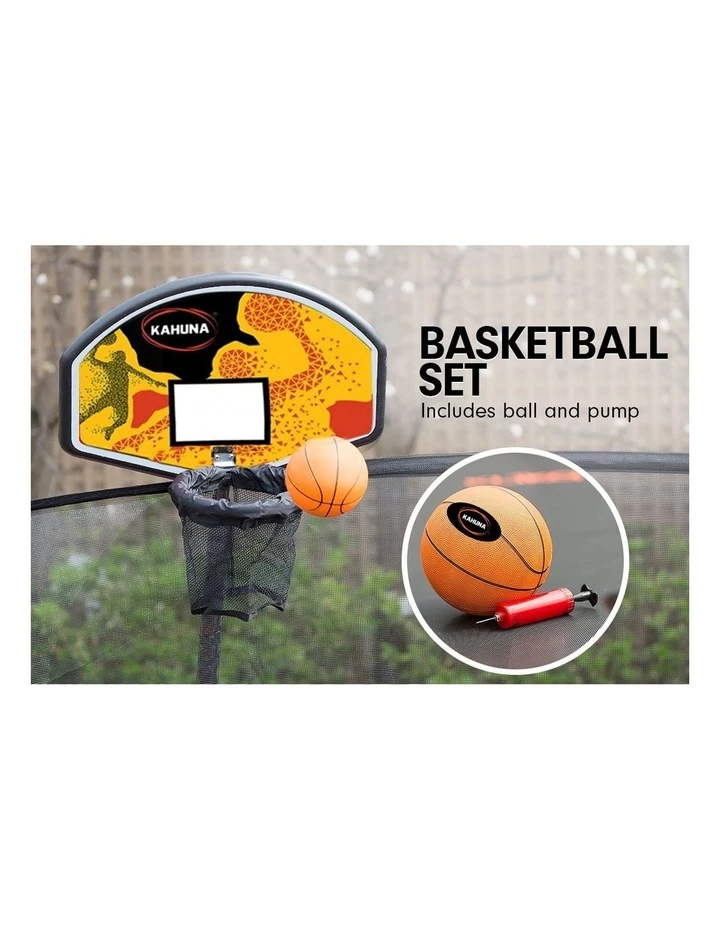 This trampoline is supplied with a basketball kit to add even more fun for the kids. This includes the backboard and ring, net, ball, and pump!