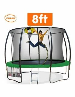 Kahuna 8ft Round Spring Trampoline Free Safety Outer Net pad mat ladder shoe Tidy Basketball Pink