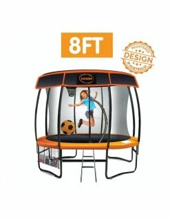 Kahuna New 14ft Trampoline Free Safety Net Spring Rainbow Pad Roof Mat Ladder Basketball – Orange